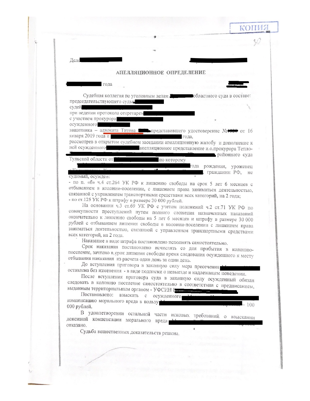 | 4 | Участие адвоката в суде 2 инстанции. | 50 000 р. |