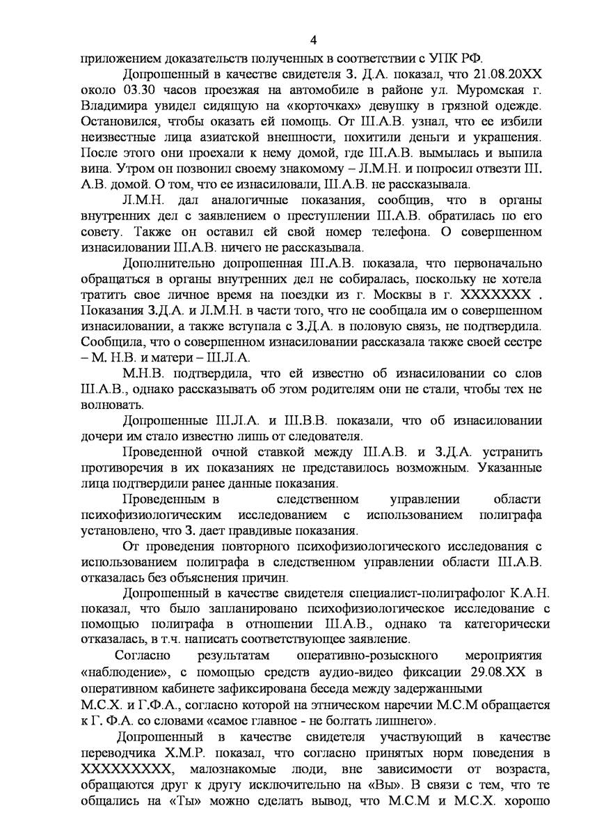 Сложностью уголовного дела являлся ряд факторов, среди которых следует отметить: обвиняемые не владели русским языком; в отношении обвиняемых была избрана мера пресечения в виде заключения под стражу; на первоначальном этапе расследования ходатайства стороны защиты полностью игнорировались следствием, а если и рассматривались то только после того как доказательства свидетельствующие о невиновности обвиняемых утрачивались в связи с истечением сроков их хранения на носителях (записи камер видеонаблюдении), либо выездом за пределы Российской Федерации свидетелей по уголовному делу; привлечением следователем в качестве понятых и статистов при производстве следственных действий граждан других государств, многие из которых в дальнейшем покинули пределы Российской Федерации, некоторые из них на момент производства следственных действий даже не владели русским языком.